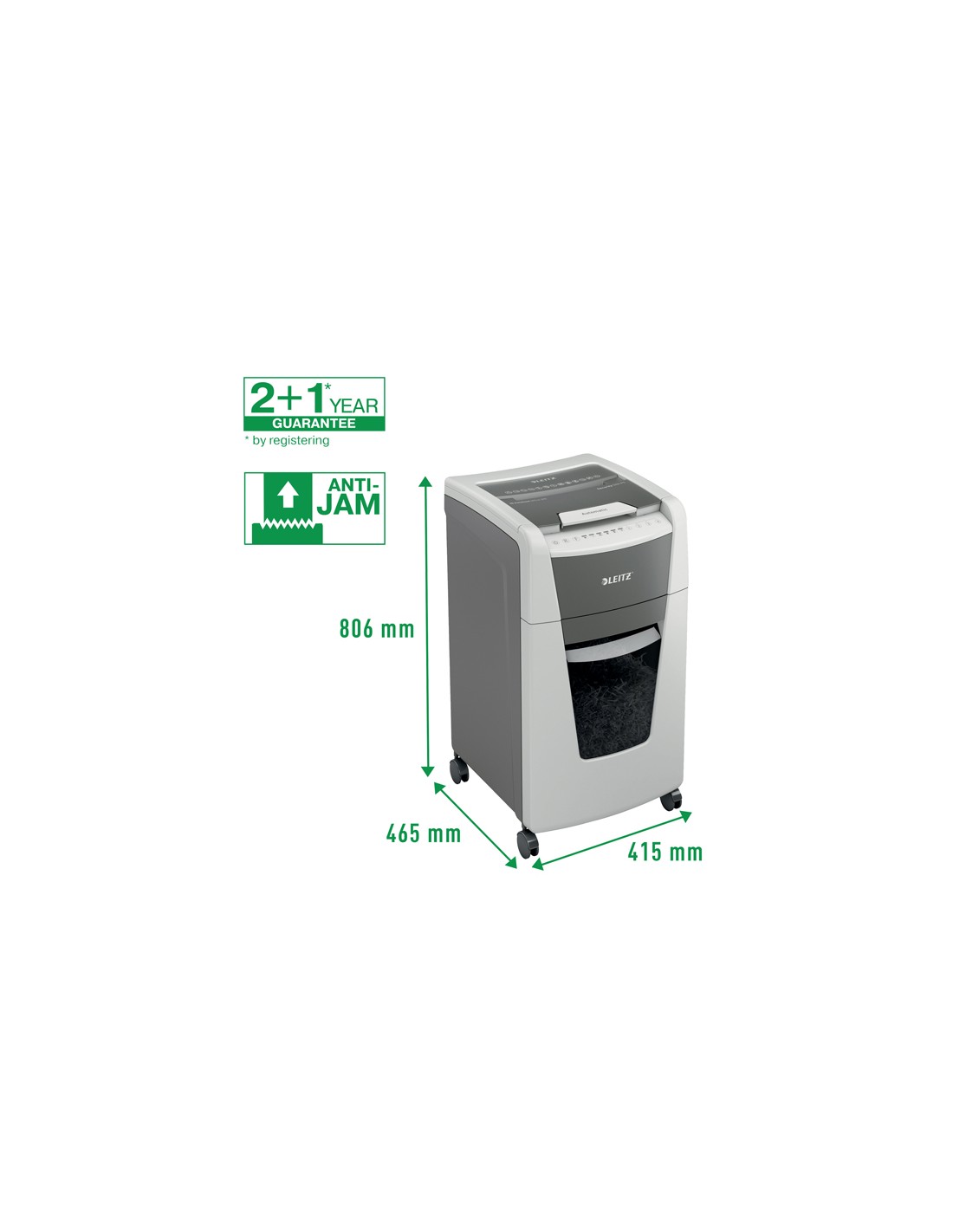 Il distruggidocumenti Leitz IQ è completamente automatico con un'esclusiva funzione di svuotamento pulito. Così intelligente che lavora da solo senza fare rumore, basta inserire la risma di carta (incl. punti e graffette), chiudere il coperchio e si potrà andare avanti con la propria giornata. Ideale per piccoli uffici. Massima sicurezza e prestazioni eccellenti sono garantite con questo distruggidocumenti con meccanismo anti inceppamento, silenzioso e con ciclo di lavoro lungo (60 min). Distruggi automaticamente fino 300 fogli A4 in frammenti con un livello di sicurezza P4 (4x30mm) rilasciati nell'ampio cestino da 60L. Funzionamento semplice grazie ai comandi touch.