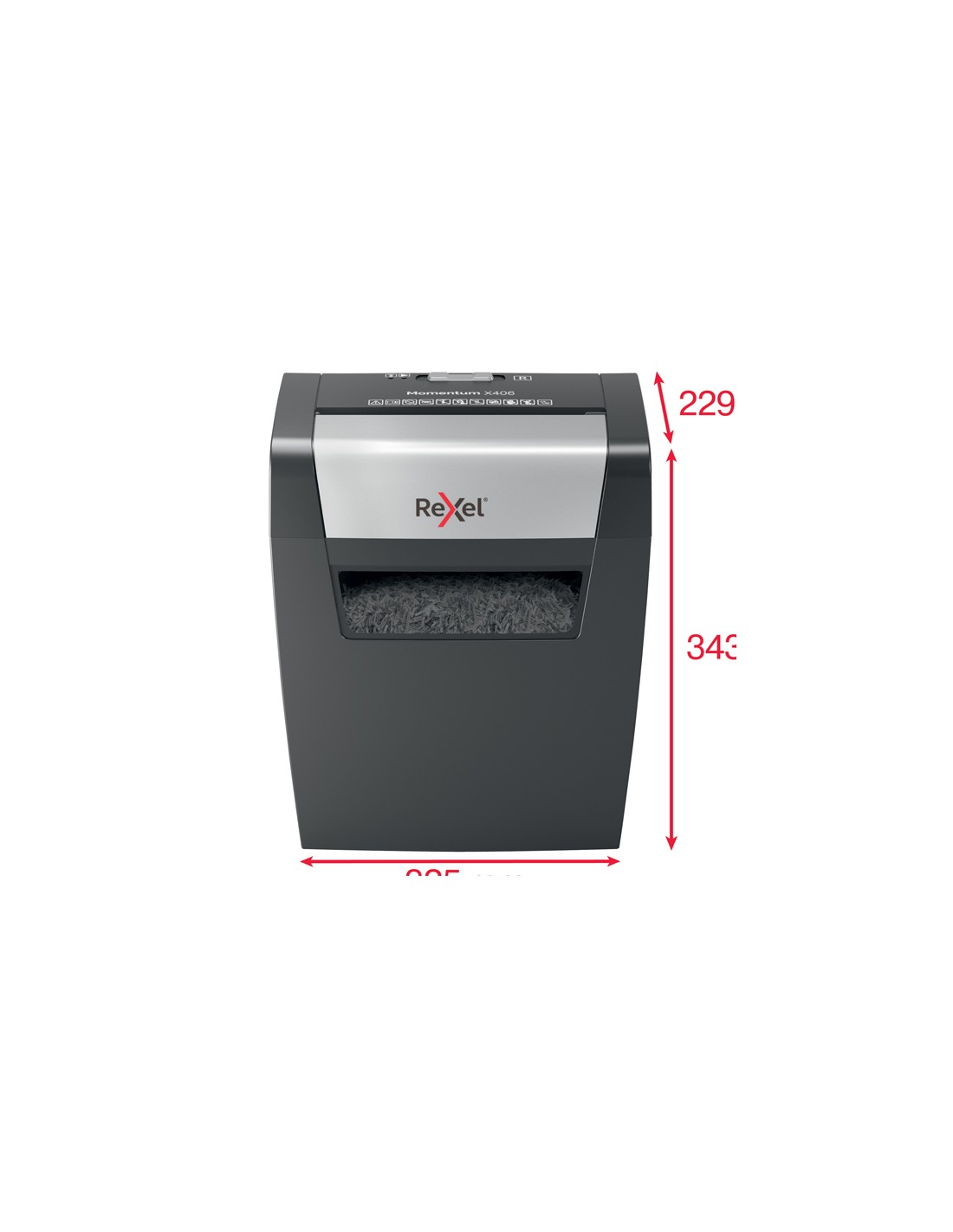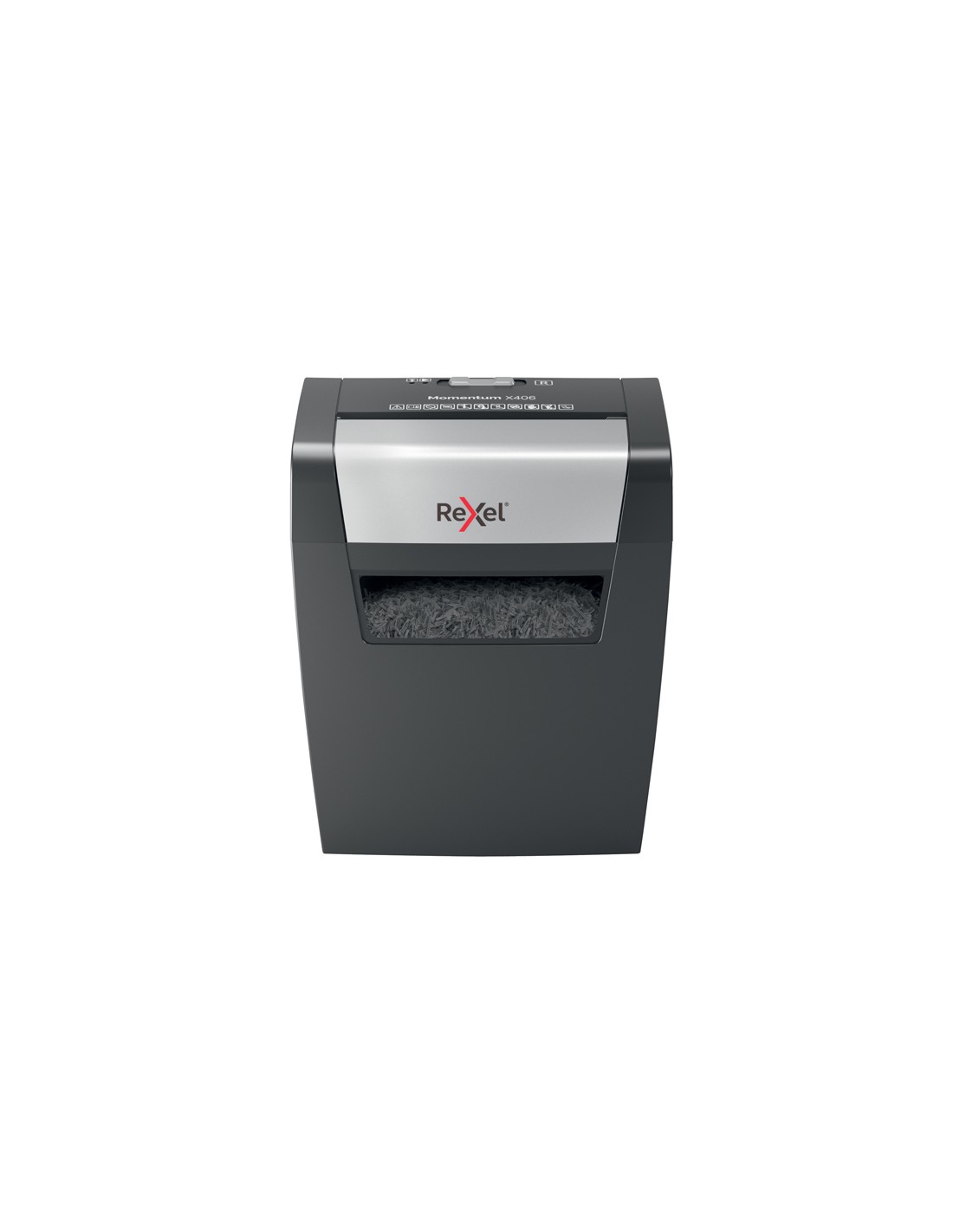 Il potere di distruggere di più! Rexel momentum X406 distrugge fino a 6 fogli per volta con un ciclo di lavoro continuo di 3 minuti che lo rende ideale per l'uso a casa. Livello di sicurezza P4 con taglio a frammenti da 4x30 mm. Capacità del cestino da 15 litri (125 fogli A4) Distrugge fino a 6 fogli per voltaAlto livello di sicurezza P4 con taglio a frammenti da 4x30 mmDistrugge più carta più a lungo con un ciclo di lavorazione continuo di 3 minutiDistrugge facilmente più documenti anche con punti e graffette agli angoliUn generoso cestino da 15L che contiene fino a 125 fogli A42 anni di garanzia