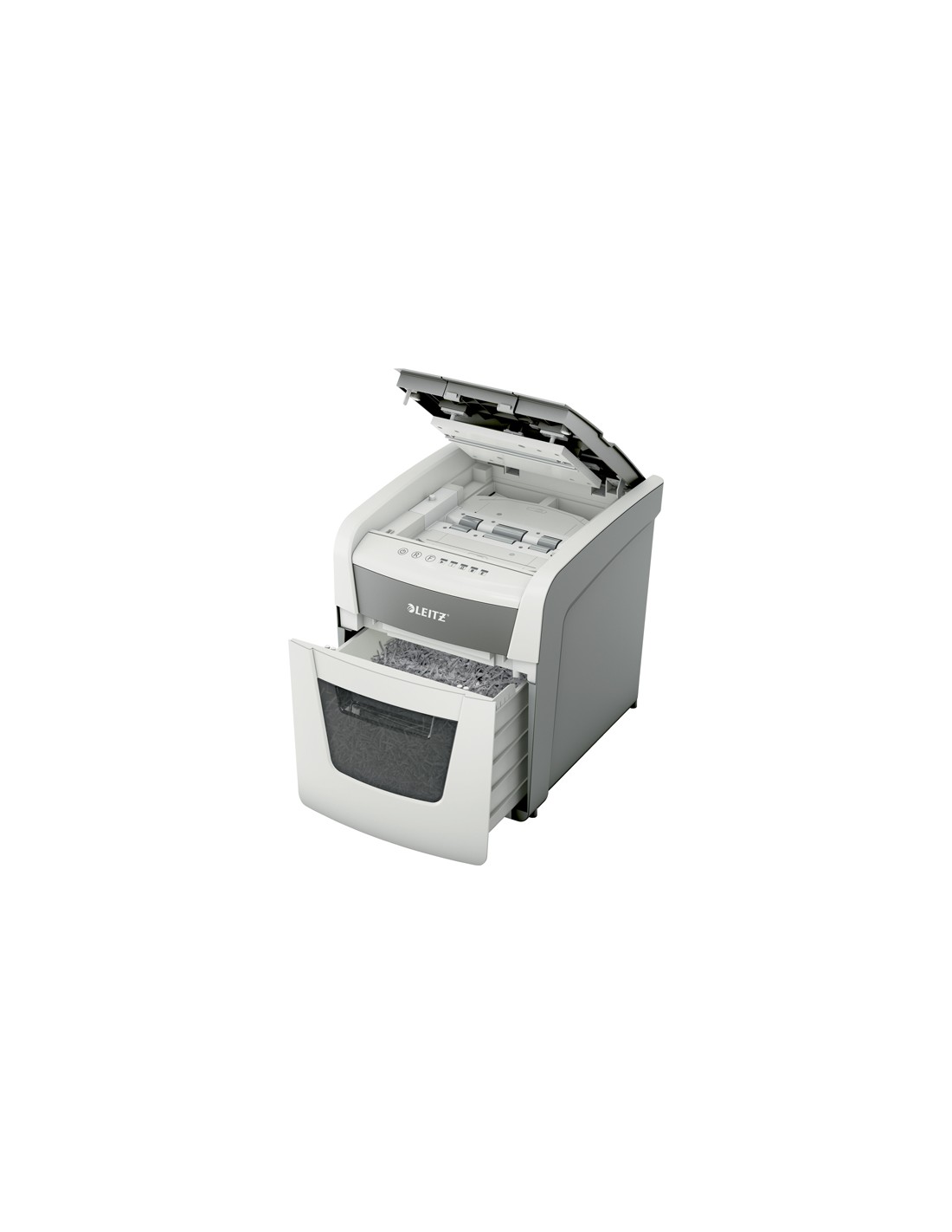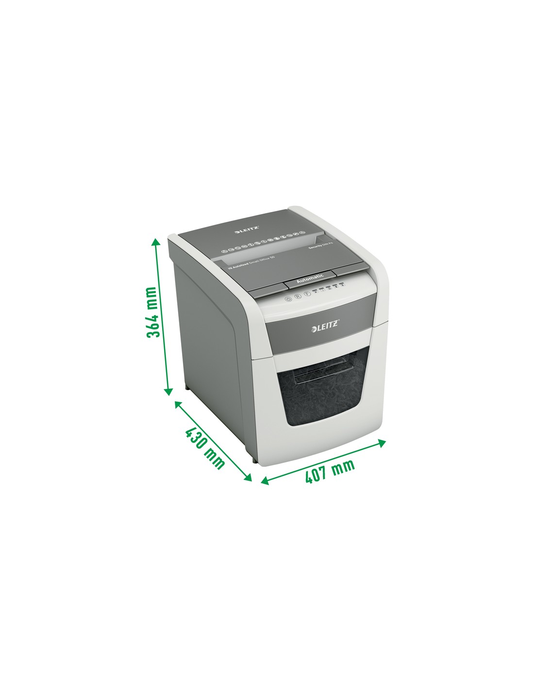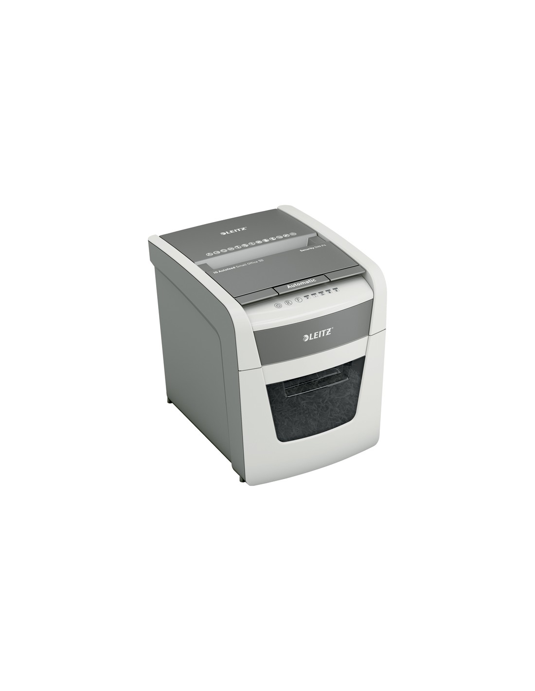 Il distruggidocumenti Leitz IQ è completamente automatico. Così intelligente che lavora da solo senza fare rumore, basta inserire la risma di carta (incl. punti e graffette), chiudere il coperchio e si potrà andare avanti con la propria giornata. Ideale per l'uso in piccoli uffici o a casa. Riservatezza e prestazioni eccellenti sono garantite con questo distruggidocumenti ad alimentazione automatica con tecnologia anti inceppamento, silenzioso e con ciclo di lavoro di 10 minuti. Distrugge automaticamente fino a 50 fogli A4 in frammenti con un livello di sicurezza P4 (4x28 mm) rilasciati nel compatto cestino da 20 litri. Funzionamento semplice grazie ai comandi touch.